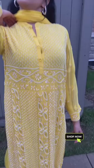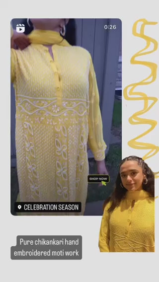 Pure chikankari moti hand embroidered 3 piece suit set
